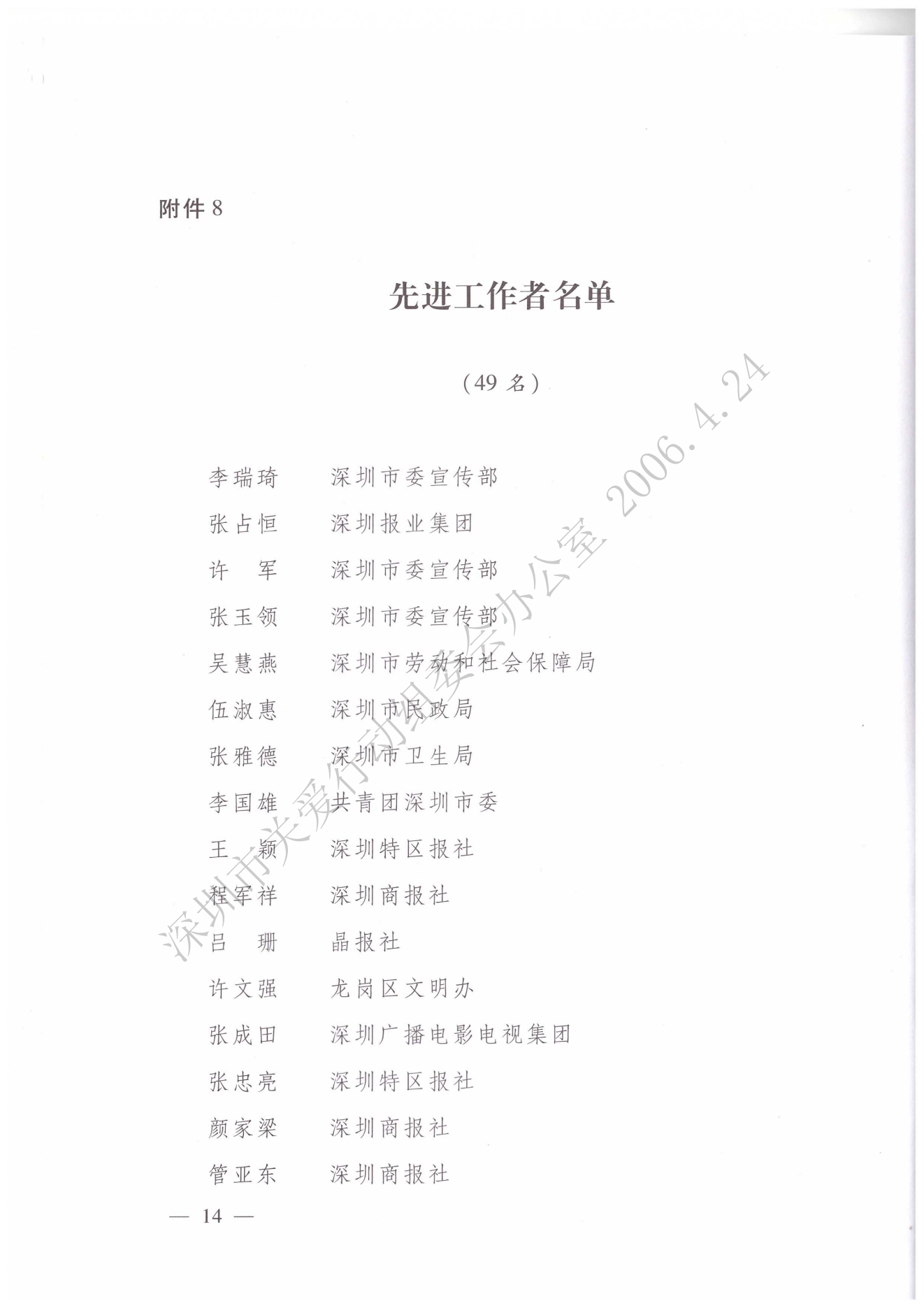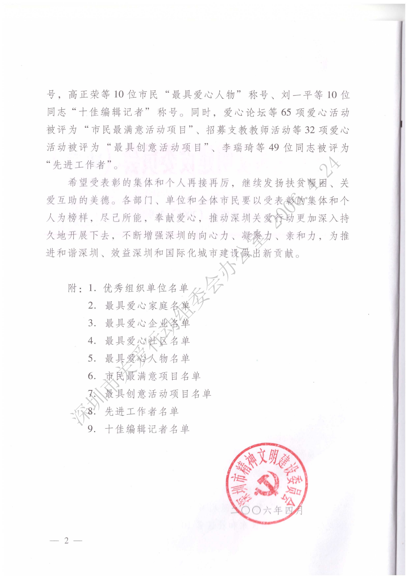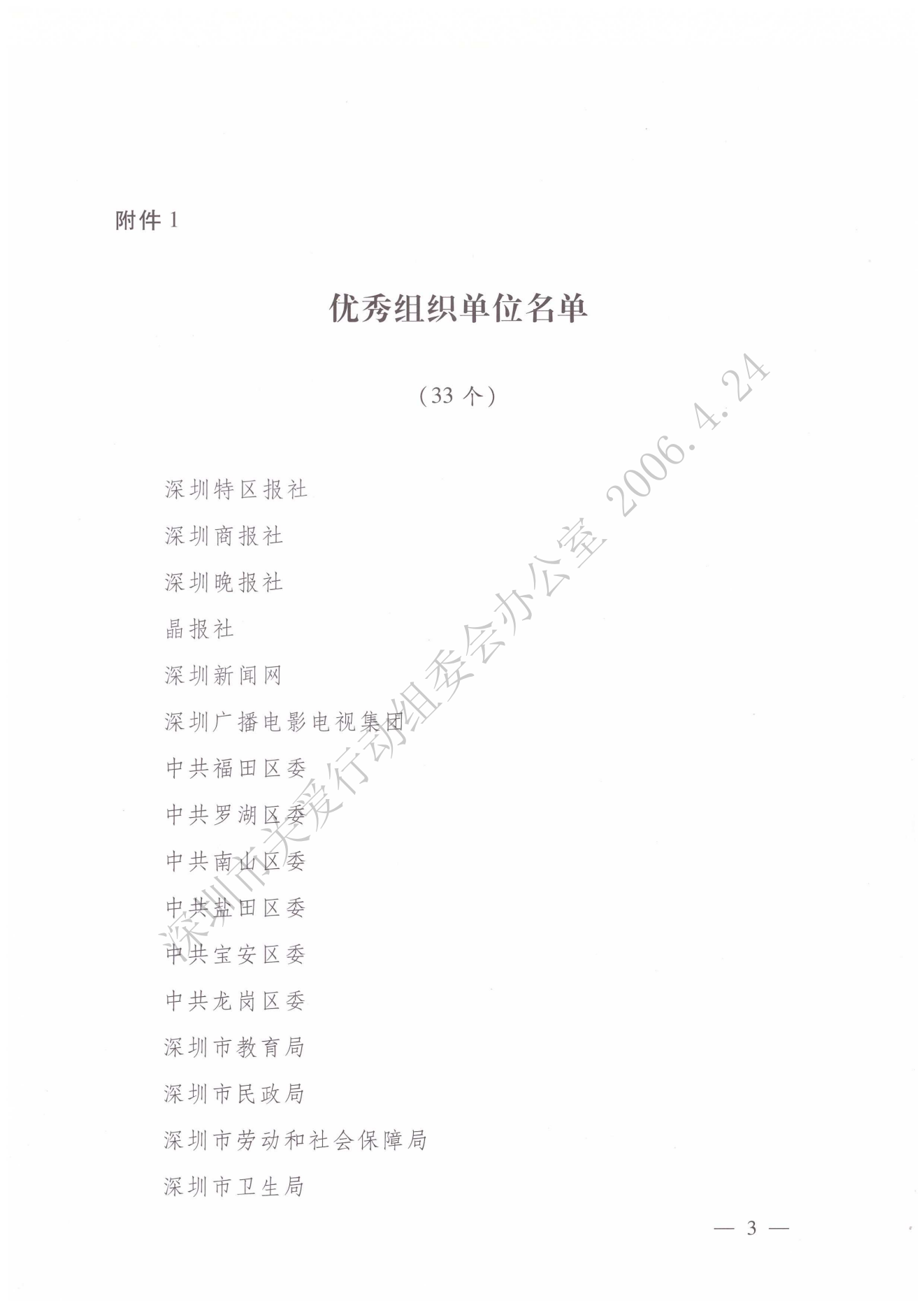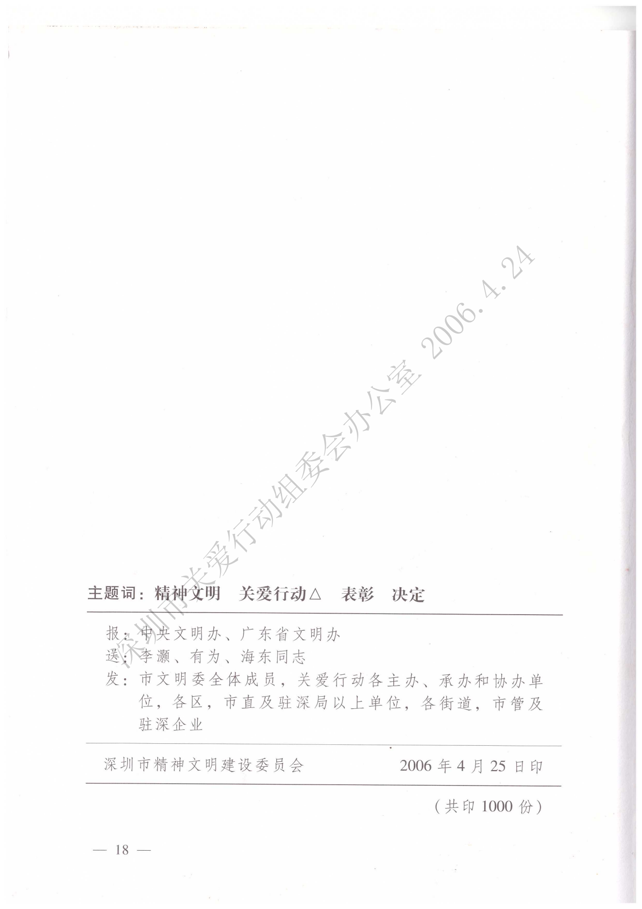 深圳市精神文明建設委員會關于表彰第三屆深圳關愛行動先進集體和先進個人的決定