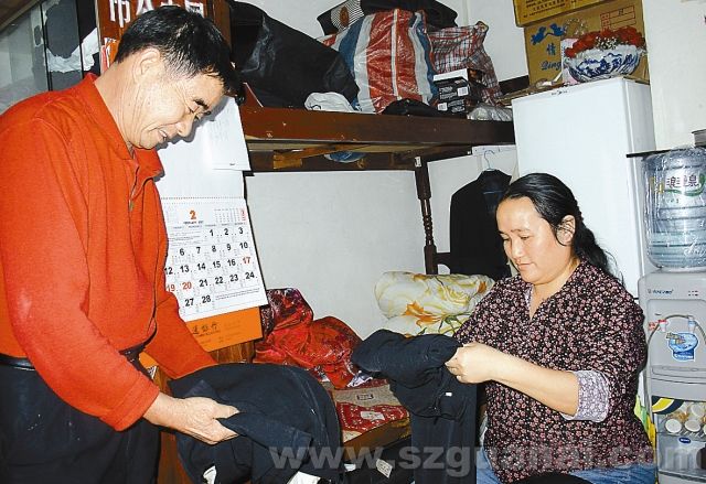獲得免費機票的劉賢國與妻子在清理衣物準備回家過年。 (周國和攝)