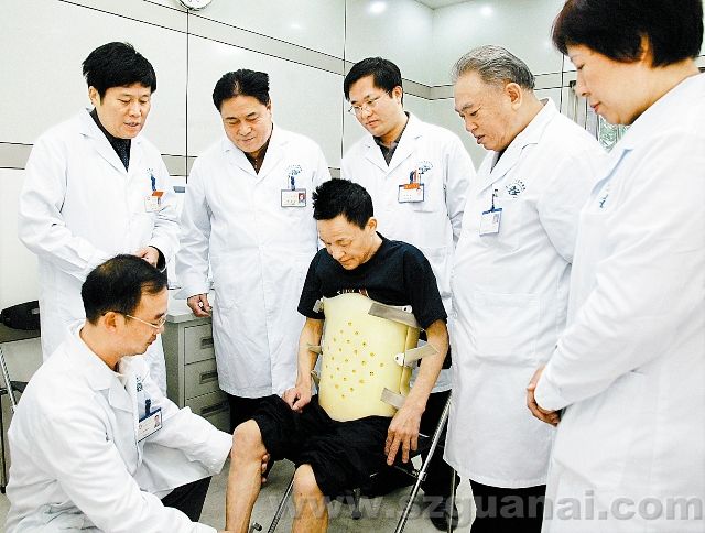 平樂骨傷醫院的專家們正在給袁顯文會診。 (許光明 張覓 攝)