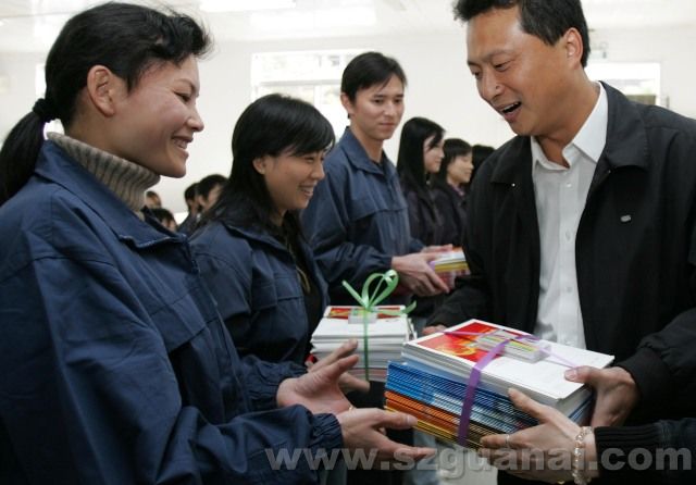 2007年1月22日下午,深圳市共青團(tuán)工作人員前往蓮塘工業(yè)區(qū)慰問(wèn)外來(lái)青工。為他們帶來(lái)了電話(huà)卡,刊物以及健康飲品,祝愿他們工作順利,春節(jié)愉快。團(tuán)市委書(shū)記張文為青工們送來(lái)了精神食品。(商報(bào)記者 商報(bào)姜志強(qiáng) 攝影報(bào)導(dǎo))