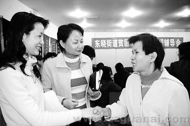 2007年2月27日,聽(tīng)完“單親貧困母親心理輔導(dǎo)會(huì)”后,東曉街道一位單親母親握著婦聯(lián)領(lǐng)導(dǎo)的手說(shuō):“報(bào)告太精彩了,我一定會(huì)堅(jiān)強(qiáng)起來(lái)!”。(袁糧鋼 戴曉蓉 翁惠娟攝)