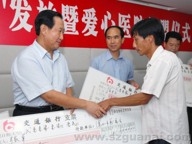 市政協主席、市慈善會會長李德成為勞務工發放關愛基金(陳錦輝攝)
