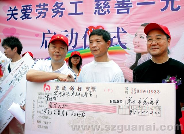 2007年4月28日,由市民政局、市慈善會、市關愛辦、深圳報業集團聯合舉辦的“勞務工關愛基金”發放儀式暨福彩杯“勞務工風采”攝影大賽作品展開幕及頒獎在深圳購書中心舉行。市政協主席、市慈善會會長李德成出席了發放儀式及攝影展開幕式,并為6名勞務工代表發放了救濟金,為攝影大賽的獲獎者頒獎。此次攝影大賽共收到1300多幅稿件,共評出12幅獲獎作品,68幅優秀作品。 (特區報記者許光明 王洪濤攝)