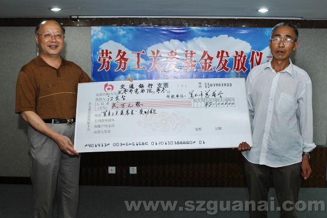李德成向勞務工發放“勞務工關愛(陳錦輝攝)基金”