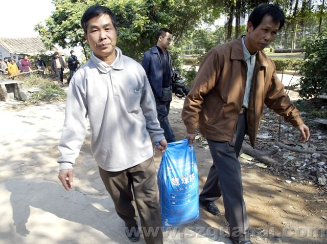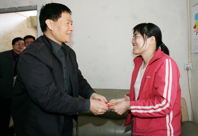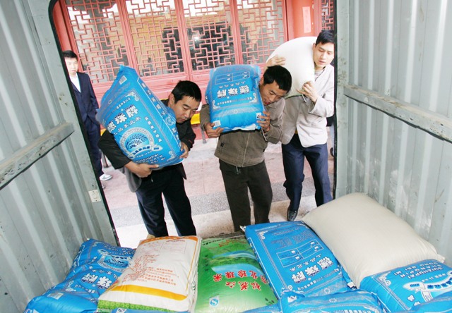 慰問團(tuán)將大米和食用油等生活用品送到吳茂輝家中。