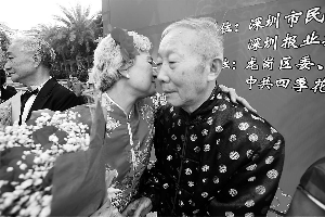 晶報訊(2008/02/22 記者 霍敏/文 成江/圖)“結婚時條件不好,只發了幾塊糖,這樣過‘情人節’還是第一次?!贝┥蠉湫碌亩Y服,行走在奏響婚禮進行曲的紅地毯上,年過金婚的朱幸海和吳景環老人幸福得熱淚盈眶。昨日下午,在坂田四季花城鄰里節龍崗分會場,這樣的溫情場面讓人感動。