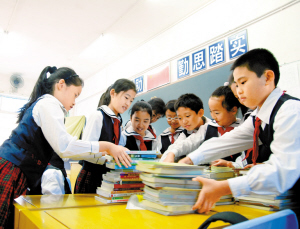 去年共樂小學全校學生共捐出7000多本課外書籍供義賣,主要為學生作文選和故事集,籌得款項2萬余元,共購新書1000多本捐往貧困地區。由于今年的舊書義賣剛結束,學校跟寶安書城聯系好,書城將會在下周將新書運到學校。到時,學生除了在書上送上自己的祝福和問候以外,還將會在捐贈的書籍的第一頁親手寫上自己的通訊地址和聯系方式,讓兩地學生聯系更加緊密。