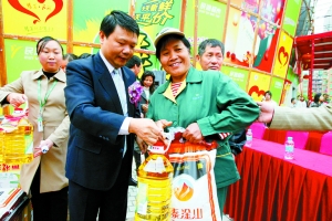 2008年1月16日,低保戶喜領慰問品。 本報記者 陳發清攝