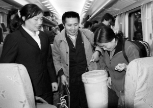 1月10日上午10時45分,滿載川音的K586次列車從深圳西站出發(fā)。車廂里擠滿了人,想往前走一步似乎都無從下腳,但是返鄉(xiāng)的勞務工們個個都顯得興高采烈。他們用鄉(xiāng)音互相問候,說著各自有趣的打工經(jīng)歷。