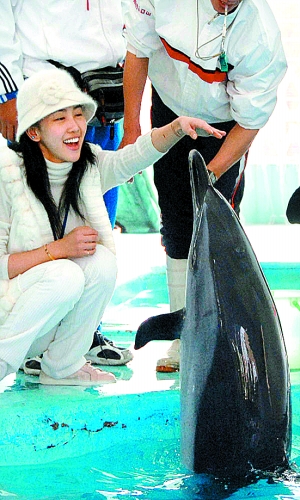 在海豚館里,大家終于見到了本次活動的大明星——4只活潑可愛的海豚。它們在深達6米的池里暢游,見到迎接自己的“親人”,開心地跳出水面。隨后出現了感人的一幕:“海豚大使”在工作人員帶領下與這些海洋精靈親密接觸,它們相繼安靜下來,游到岸邊,用長長的吻部輕輕觸碰大使們的手。兩個自閉癥兒童吳子喻、徐宇彤格外開心,他們還拿著小魚喂給海豚,聽到海豚的鳴叫,兩個孩子開心地笑個不停。