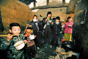 店子小學旁被遺棄的牛欄成了孩子們的飯堂。