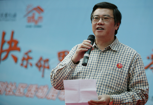 穆同倫副主任向晶報授與“快樂鄰里”水晶標志牌
