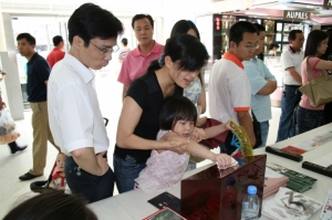 “愛延續(xù)”大型義賣現(xiàn)場(chǎng)之一——小朋友在媽媽帶領(lǐng)下積極捐款。