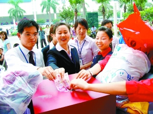 活動(dòng)期間,這六家天虹還聯(lián)系多家品牌,為災(zāi)區(qū)進(jìn)行義賣捐獻(xiàn)。市民可以在商場(chǎng)專門設(shè)置的賑災(zāi)愛心品牌義賣區(qū)購買商品,而天虹會(huì)將顧客消費(fèi)的現(xiàn)金直接投入深圳市慈善會(huì)提供的捐款箱,并通過深圳慈善會(huì)捐贈(zèng)災(zāi)區(qū)。