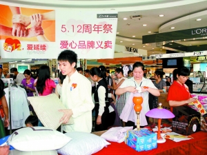 在為災(zāi)區(qū)兒童圓夢的同時,天虹還在其深南天虹、天虹購物廣場、南山常興天虹、國貿(mào)天虹、寶安創(chuàng)業(yè)天虹、布吉天虹多個商場開展義賣、募捐活動。憑借其分店多、渠道多的優(yōu)勢,在更廣的范圍內(nèi)發(fā)動深圳人為災(zāi)區(qū)人民奉獻愛心。義賣活動得到了舒雅、AO2、杰西、季候風(fēng)、臣楓、陽光鼠、可可鴨等知名品牌的大力支持。整個義賣募捐活動共籌款13.4萬元,接收捐贈物資2000余件。其他天虹分店也開展了不同形式的活動,積極為災(zāi)區(qū)重建籌款。龍華天虹、松崗天虹等商場員工紛紛解囊,為災(zāi)區(qū)獻愛心;布吉天虹的愛心顧客甘女士更為孩子們捐贈了116個新書包;寶安前進天虹、寶安創(chuàng)業(yè)天虹、沙井天虹、松崗天虹在5月12日當(dāng)天還作為“愛心傳遞站”積極配合寶安日報和寶安區(qū)慈善會聯(lián)合舉辦的大型賑災(zāi)活動,積極籌款……