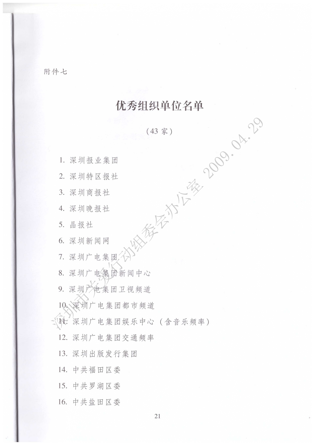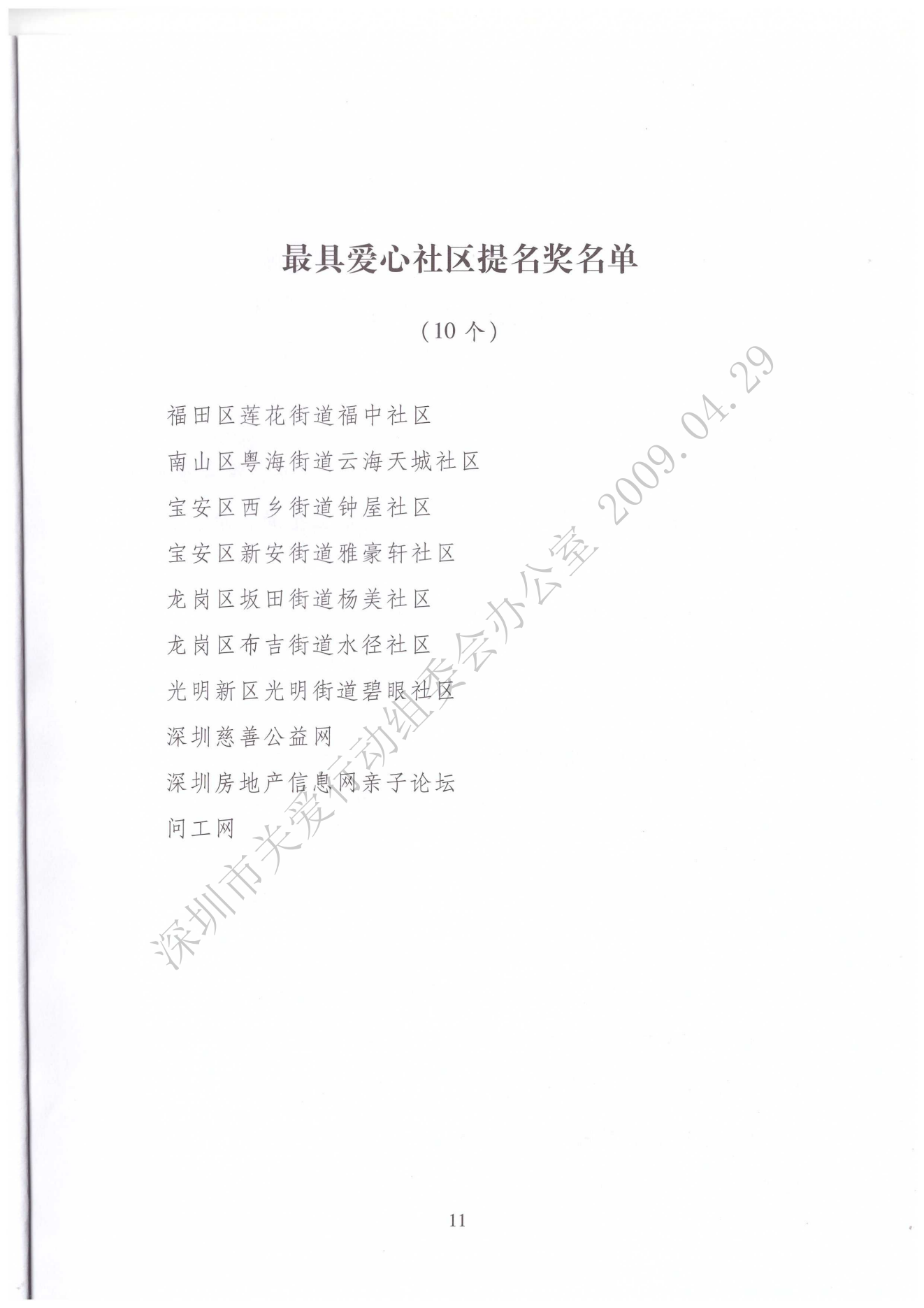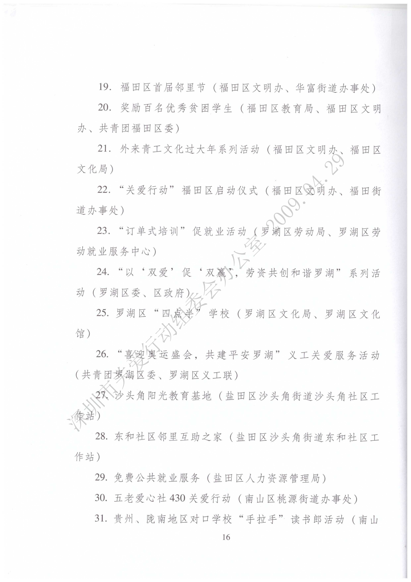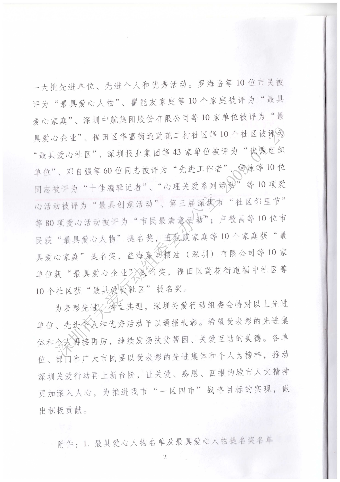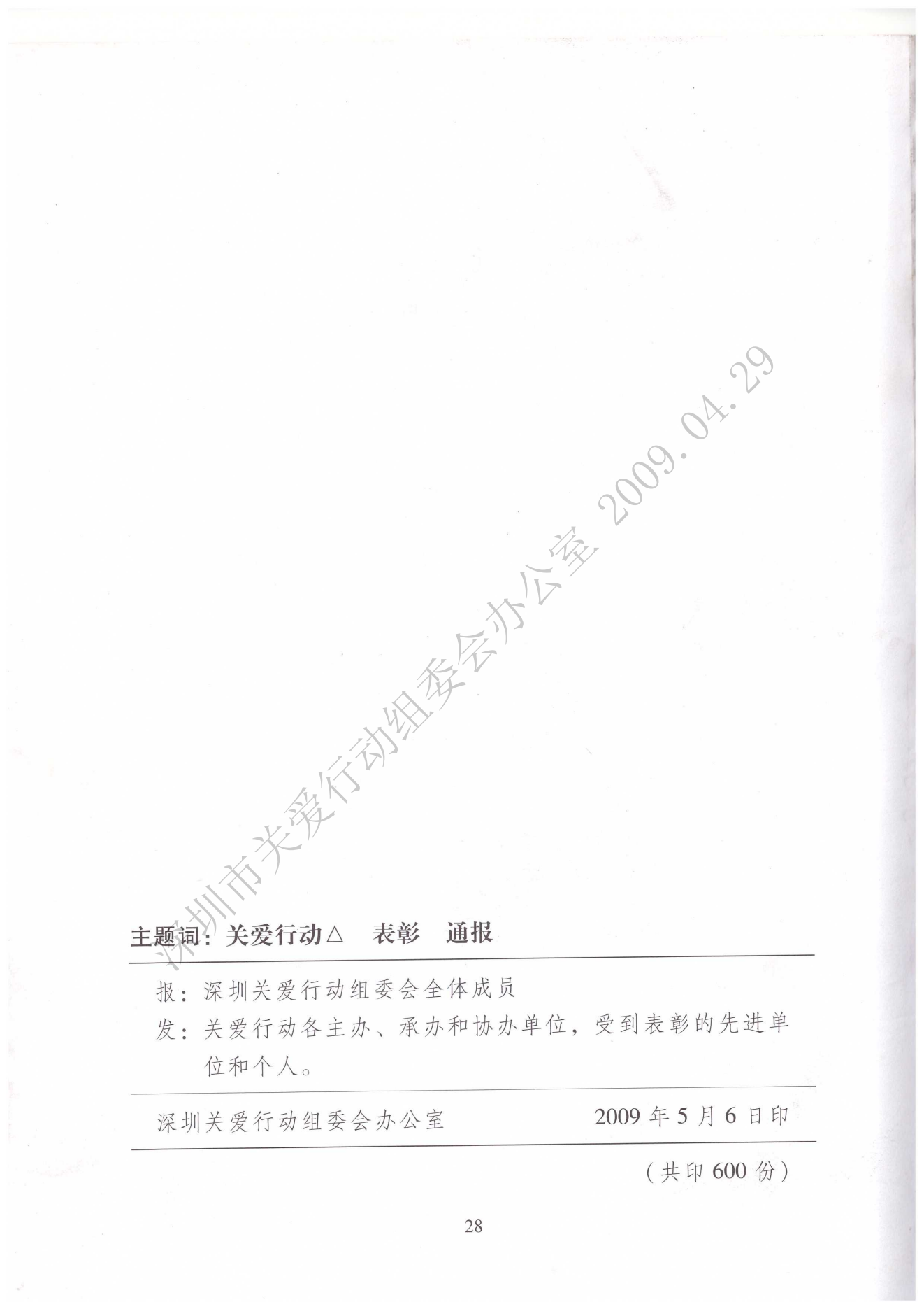 關于表彰第六屆深圳關愛行動先進集體、先進個人和優秀活動的通報