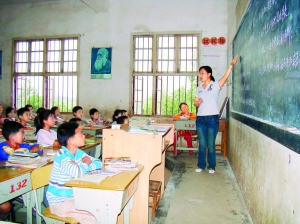參加第六批“募師支教”行動的支教老師在江西安義縣的學校上課。張琨 攝