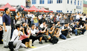 中外媒體高度關注此次捐助板房啟運儀式。