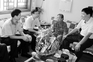 福田區區長張青山向轄區老革命贈送慰問品。 通訊員 林家駒攝
