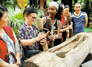 昨天是第26個國際盲人節(jié),錦繡中華·民俗村邀請60名盲人與60名義工到景區(qū)感受華夏風(fēng)光,觸摸民俗風(fēng)情。這是盲人朋友在佤族演員陪同下共擊佤族傳統(tǒng)樂器“木鼓”。