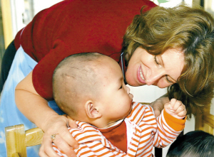 不久前的一個(gè)暖和下午,來自美國的邰敏(音譯)女士和她的18歲女兒蕾絲(音譯),在深圳市社會(huì)福利中心201室里,和生活在這里的孤兒、殘疾兒童一道玩耍,還熱心地教他們畫畫,忙碌著給他們喂飯、喂奶,就像照顧自己的孩子一樣……