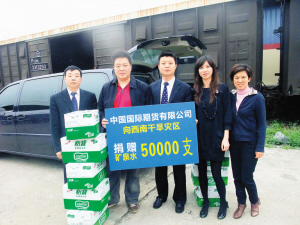 西南旱災牽動了深圳人民的心,連日來中國國際期貨有限公司面向全國客戶發起“蒲公英·傳遞愛” 積分捐贈愛心送水活動,倡議期民將自己的積分捐獻出來買礦泉水,贈送給西南災民。4月9日,該公司相關負責人及熱心期民趕到深圳北站貨場,參與了深圳的“千里送水、情牽西南”活動,當場提交了5萬元的支票。