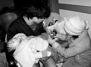家住福田的張女士是位兩歲孩子的媽媽。昨天,她在家中看了本報報道之后,決定無論如何也要到醫院來看看。她帶來了一罐奶粉及自己孩子已經穿不下的舊衣服,臨走還掏出了自己身上幾乎所有的錢。“孩子的腳怎么這么涼?”看到孩子腳上只穿了襪子,張女士細心地握住了孩子的腳,發現果然冰涼。說起來真讓人心酸,陳嘉晉長這么大還沒有穿過鞋。好在昨天下午有熱心市民送來了兩雙新鞋,其中一雙還是千針萬線納出來的棉布鞋。張女士蹲下來仔細地為嘉晉穿上了新棉鞋,一邊穿還一邊感慨,一個大男人照顧這么小的孩子,真是難為他了。