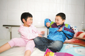彭文樂正在進行彩超檢查。 樂樂和粵粵在市福利中心逗樂。 見到“哥哥” 小粵粵愣住了 “其實我們早就想來看小粵粵了,”彭高峰提著給小粵粵買的一大包點心走進福利中心大門,兒子彭文樂一路小跑,跟著福利中心工作人員走上電梯,來到6樓小粵粵的居室。平時,這個鐘點正是小粵粵的午睡時間,保育員劉梅香把她叫醒了。 小粵粵睜開眼睛,從床上坐起身來,看到眼前的彭文樂,一下子愣住了。就在她剛剛被解救回深圳,住進福利中心的時候,看見電視里彭文樂的鏡頭,她就對保育員阿姨說“那是我哥哥”,然后就哭了。20多天過去了,當“哥哥”真的出現在面前時,小粵粵睜大眼睛盯著他,一分多鐘沒有作聲。在彭高峰的提醒下,彭文樂從給“妹妹”帶來的點心中拿出一塊糖送進小粵粵嘴里。小粵粵一邊吃著糖,一邊緊緊盯著“哥哥”,還是不出聲。 “兄妹”倆玩樂開懷大笑 這時,彭文樂又拿起一小塊沙琪瑪,調皮地往上一拋,正好掉在小粵粵的頭上。小粵粵一下子爆發出清脆的笑聲,彭文樂也大笑起來。“兄妹”倆這一笑就收不住了。彭文樂又把那一塊沙琪瑪掰了一小塊,往小粵粵嘴里塞。小粵粵調皮地咬了一口“哥哥”的手指頭,然后又大笑起來。“他們上次在一起還是從江蘇邳州回來前的那天晚上,”彭高峰說,“那天他們還不知道要分開,玩得很開心,回來之后,彭文樂雖然嘴上不說,但是我知道兒子也很掛念小粵粵。” 之后,彭文樂領著小粵粵來到了福利中心院子里的操場。“兄妹”倆一起騎木馬,爬上爬下地鬧著玩,一直發出歡快的笑聲。“小粵粵來到這里以后,從來沒有這樣開心地笑過。”市社會福利中心主任唐榮生說,2月10日入住福利中心以來,雖然小粵粵已經初步適應了環境,晚上也不再大哭大鬧,但是眼神里始終有一份拘謹和警惕,“任憑我們工作人員怎么逗她,她都不笑”。 今后會時常來看“妹妹” 歡樂的時間過得總是很快,一個小時轉眼就過去了。因為還有別的事情,下午3點左右,彭高峰帶著彭文樂離開了福利中心。因為擔心小粵粵看到“哥哥”走了難過,父子二人趁她不注意時悄悄溜走。 彭文樂和小粵粵剛被解救回來時,市婦聯的心理專家張小梨曾建議彭文樂去福利中心探望一下小粵粵,緩解小粵粵被解救之后幼小心靈受到的沖擊,幫助她渡過這個心理難關。彭高峰昨天對記者表示,當時他絕不是刻意不讓彭文樂來,而是因為他們一家要回一趟湖北老家,回到深圳后又一直在忙彭文樂上學的事情,直到昨天才有空閑。 “如果我有條件,我很愿意把小粵粵帶到家里去住。”彭高峰說,他非常同情小粵粵,考慮到兒子和小粵粵曾經有過“兄妹”親情,他是樂意讓小粵粵跟他們一家共同生活的,但是他的經濟能力和住房條件都不允許。彭高峰表示,今后周末和假期,他會經常帶著兒子來福利中心看望小粵粵,也可以接小粵粵到家里去玩,讓孩子們的親情繼續下去。 是否送回養母家難決定 此前有媒體報道,因為小粵粵十分想念養母,考慮到在福利中心生活無法讓她享受到家庭的溫暖,福利中心有意將小粵粵送回江蘇邳州的養母家中。對此,唐榮生昨天對晶報記者說,小粵粵來到深圳將近一個月,仍然十分想念養母,并且親生父母仍然沒有線索。保育員劉梅香告訴記者,小粵粵雖然初步適應了福利中心的環境,但還是經常念叨“要媽媽”,有時甚至拿到糖果也要留著,說要“留給媽媽吃”。 是否因此就要把小粵粵送回養母家?唐榮生表示,此事目前尚難做出決定。首先,她的養母在彭文樂、小粵粵被拐案件中并不是完全無辜的,她至少對丈夫拐帶兒童的行為知情不報,負有一定的法律責任。同時,法律界對此也有爭議,徐州師范大學法政學院法律系教授張峰振接受采訪時就表示,雖然孩子在養母家可能會得到更好的成長,是符合情理的,但又有違背法理之嫌,情理與法理的糾結讓此事處于兩難境地。 唐榮生表示,深圳市社會福利中心將十分慎重地對待這件事情。近日,他將前往江蘇邳州,與當地相關部門協商,并到小粵粵養母家與其交流,綜合考慮各方因素決定小粵粵今后生活的安排;不過,不論小粵粵今后跟誰一起生活,她作為被解救出來的被拐兒童的身份不會改變,深圳市社會福利中心將是她今后的監護人;如果今后不與養母一起生活,福利中心將考慮把小粵粵寄養在深圳有經濟條件、有愛心的家庭。 □相關新聞 兒子回來太削瘦,發微博求助 中海醫院免費為彭文樂父子體檢 晶報訊(記者 王志明 通訊員 陳瑛/文、圖)“兒子吃飯少,睡覺也出汗,削瘦了不少,會不會身體有毛病?”剛尋回兒子的彭高峰,欣喜過后又愁上心頭,并發微博希望網友幫忙想想辦法。深圳中海醫院工作人員得知后,主動聯系彭文樂父子,免費為他們做了一次全身體檢。結果顯示父子倆身體健康還算理想。 據深圳中海醫院兒科主任醫師李春艷介紹,小文樂除了輕度缺鈣以外,其他方面的生長發育及健康狀況均較好,囑咐家人注意飲食營養均衡。另外,彭高峰雙腎有6*5mm大小的結石,目前無明顯病理體征,亦不需要手術治療。