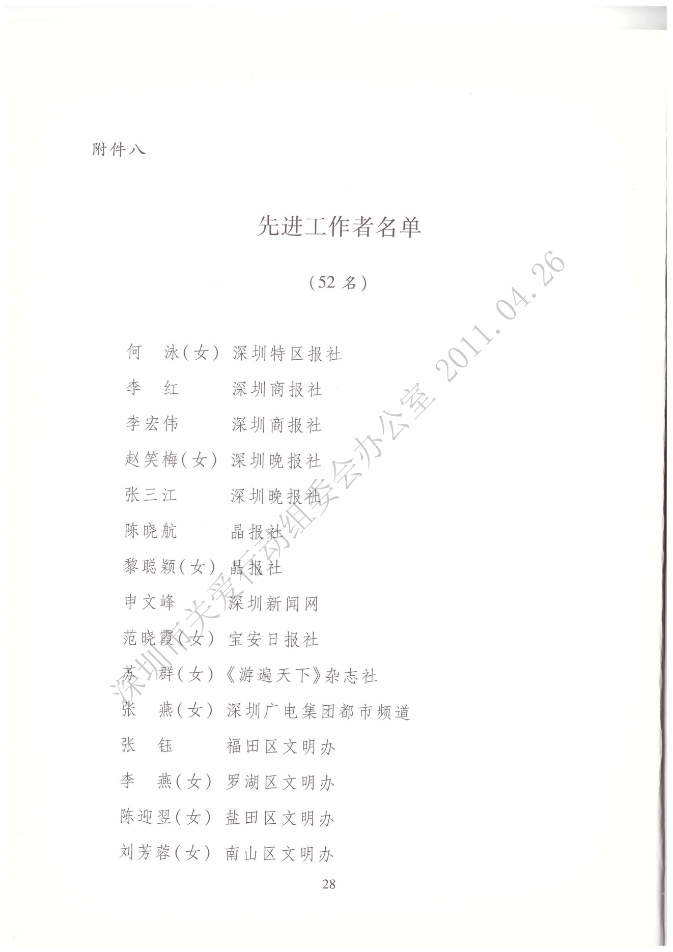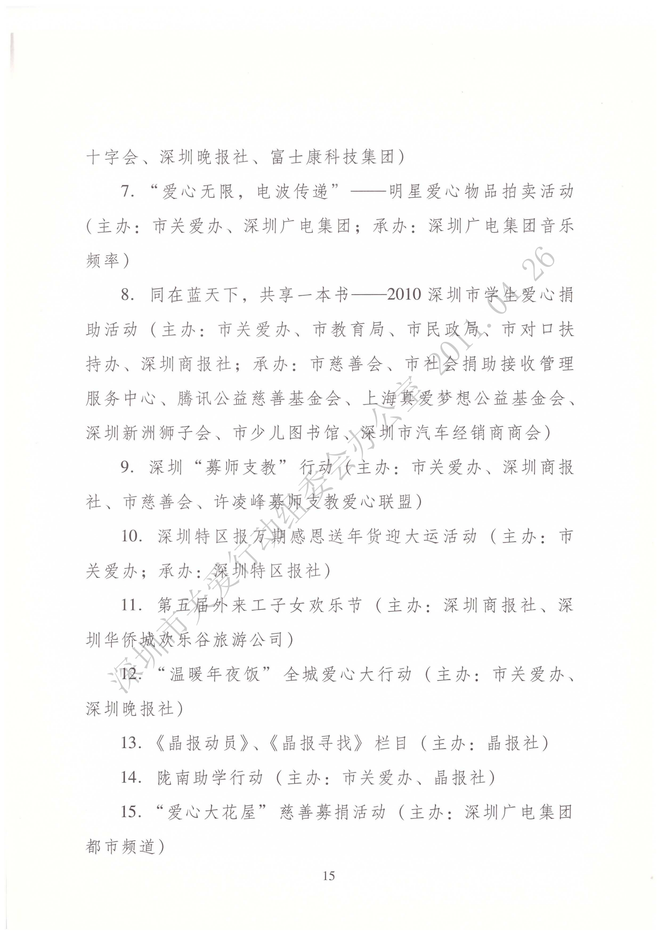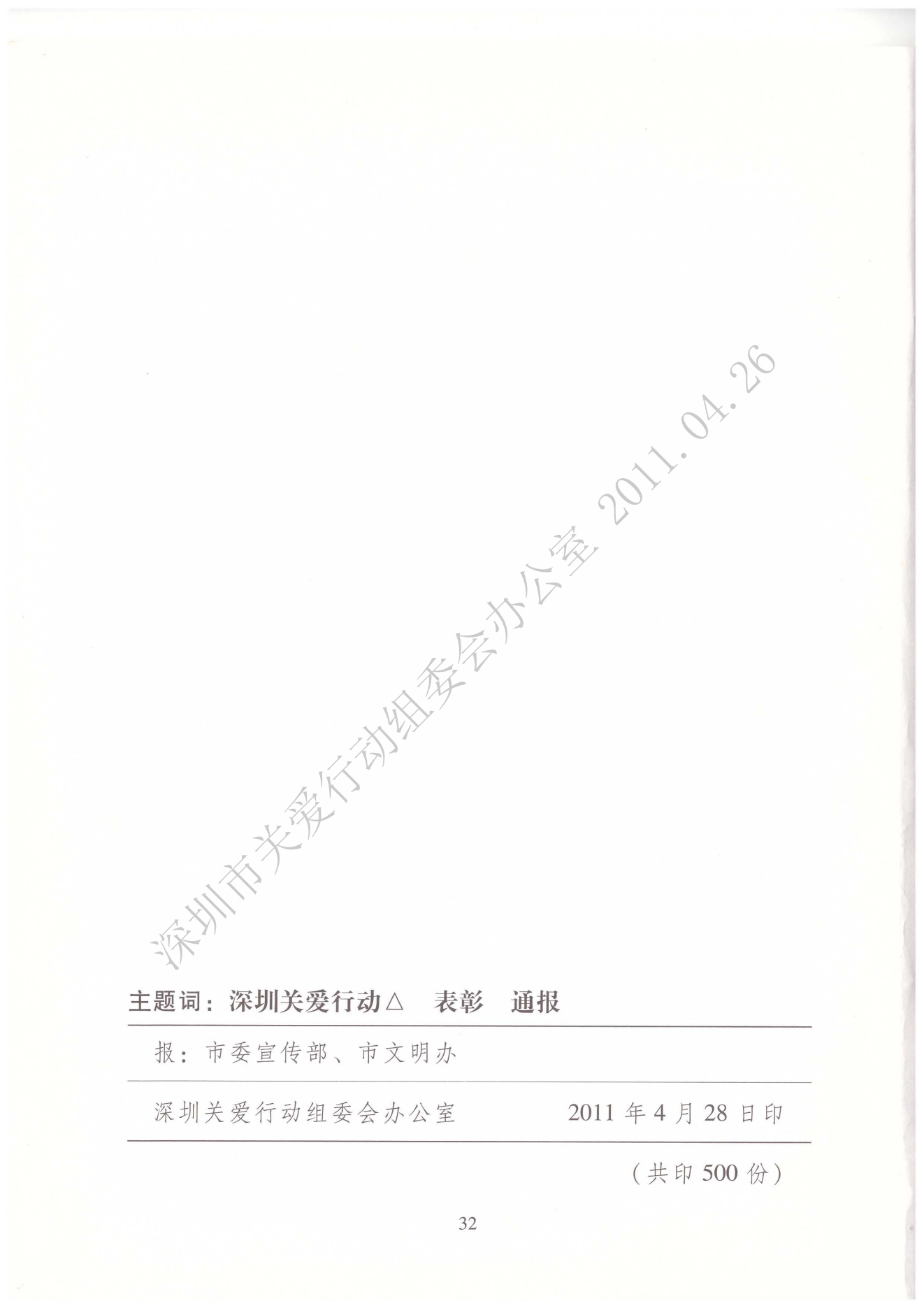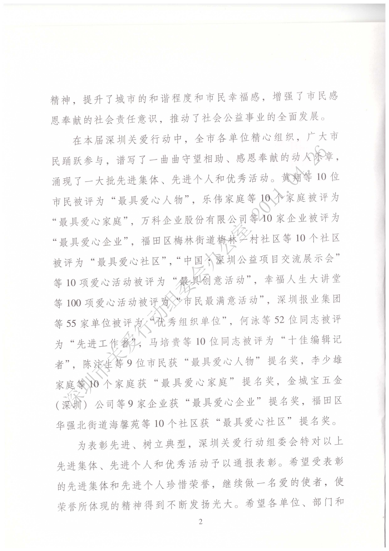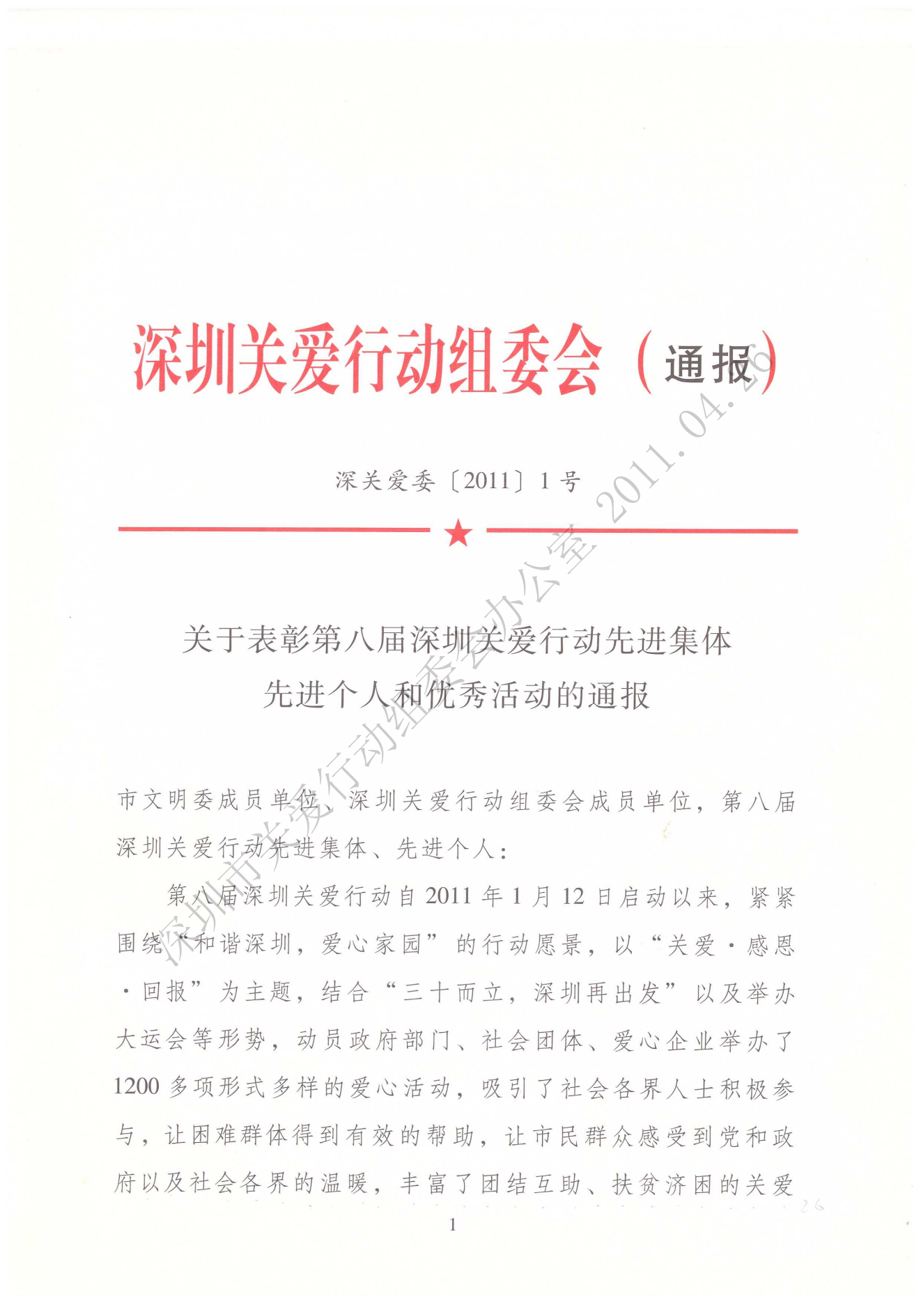 關于表彰第八屆深圳關愛行動先進集體、先進個人和優秀活動的通報
