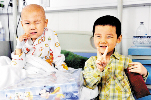 病床上,7歲的哥哥王振興和4歲的弟弟坐在一起,也許,還處于懵懂年齡的弟弟并不明白眼前的一幕,但正是他的臍帶血干細胞和骨髓成功移植給了哥哥,才讓哥哥結束了7年的痛苦煎熬。