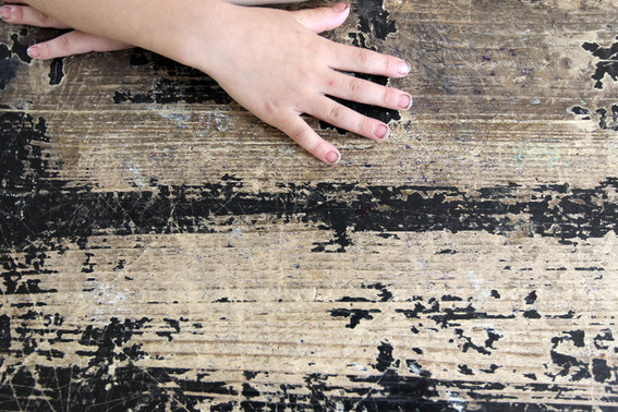 用了多年的桌椅已經松動搖晃,桌面凹凸不平。