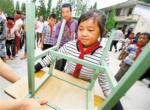 貴州畢節三元鄉中心學校小朋友領到了“愛心書桌”。
