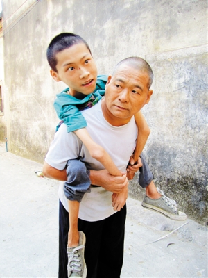 ????現(xiàn)今,王中民每每從工廠做完清潔回來,不管多晚,都會背著兒子出門,他背的姿勢也很獨特,兒子的兩只瘦腳被他夾在腋下,兩手抓著兒子的兩手。“我背習(xí)慣了,一點都不覺得他重。”