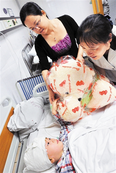 ????【深圳商報訊】(記者 秦興梅 實習生 鄒惠康 邵凡凡)被路邊撿到的玻璃瓶中所裝硫酸嚴重燒傷的3歲男童威威,昨天在市二醫院順利完成整形手術。深圳商報有關領導前往醫院看望慰問,并轉交了愛心人士匯至“深圳市關愛行動公益基金會”賬戶上給小威威的全部捐款。