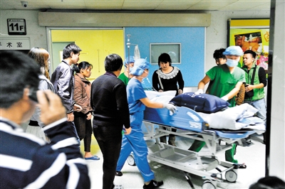 下午6時25分,在3名醫(yī)護人員的護送下,鄧杰終于從手術室推了出來。鄧杰的爸爸媽媽、爺爺奶奶一直將他送到了一樓的重癥監(jiān)護室。