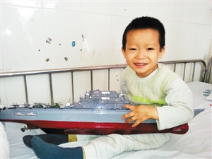 近幾日,小相前靠輸血小板維持生命。熬過了今天,父母就盼望隔天還能見到他活蹦亂跳。“看著孩子能說能笑,心情就好多了。”母親程麗說。病床上,小相前將模型船翻來轉(zhuǎn)去,“這個船,可以游到水里了。”小相前跟媽媽提出要求。余海昌夫婦欣慰一笑。“從他生病到現(xiàn)在,我從來沒有感覺到這么幸福。”程麗感激說,“有這么多的人關(guān)心我的孩子,我有信心陪孩子走到最后。”(見習(xí)記者 李瑤娜)