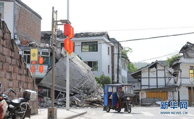 4月20日,一名居民從蘆山縣城內垮塌的房屋前經過。當日,四川雅安蘆山縣發生7.0級地震。其中蘆山縣的龍門鄉、寶盛鄉、太平鎮三地受災最為嚴重。新華社記者 金小明 攝