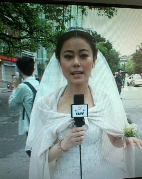 最美新娘,穿婚紗報道災情 4月20日,雅安電視臺主持人陳瑩(@cying12 )原本與相戀十年的男友舉行婚禮,凌晨她還在為婚禮雀躍而睡不著。早上8點02,雅安地區遭受7.0級地震。地震發生后,她來不及換下婚紗就在第一線進行報道,被網友稱為“最美新娘”。