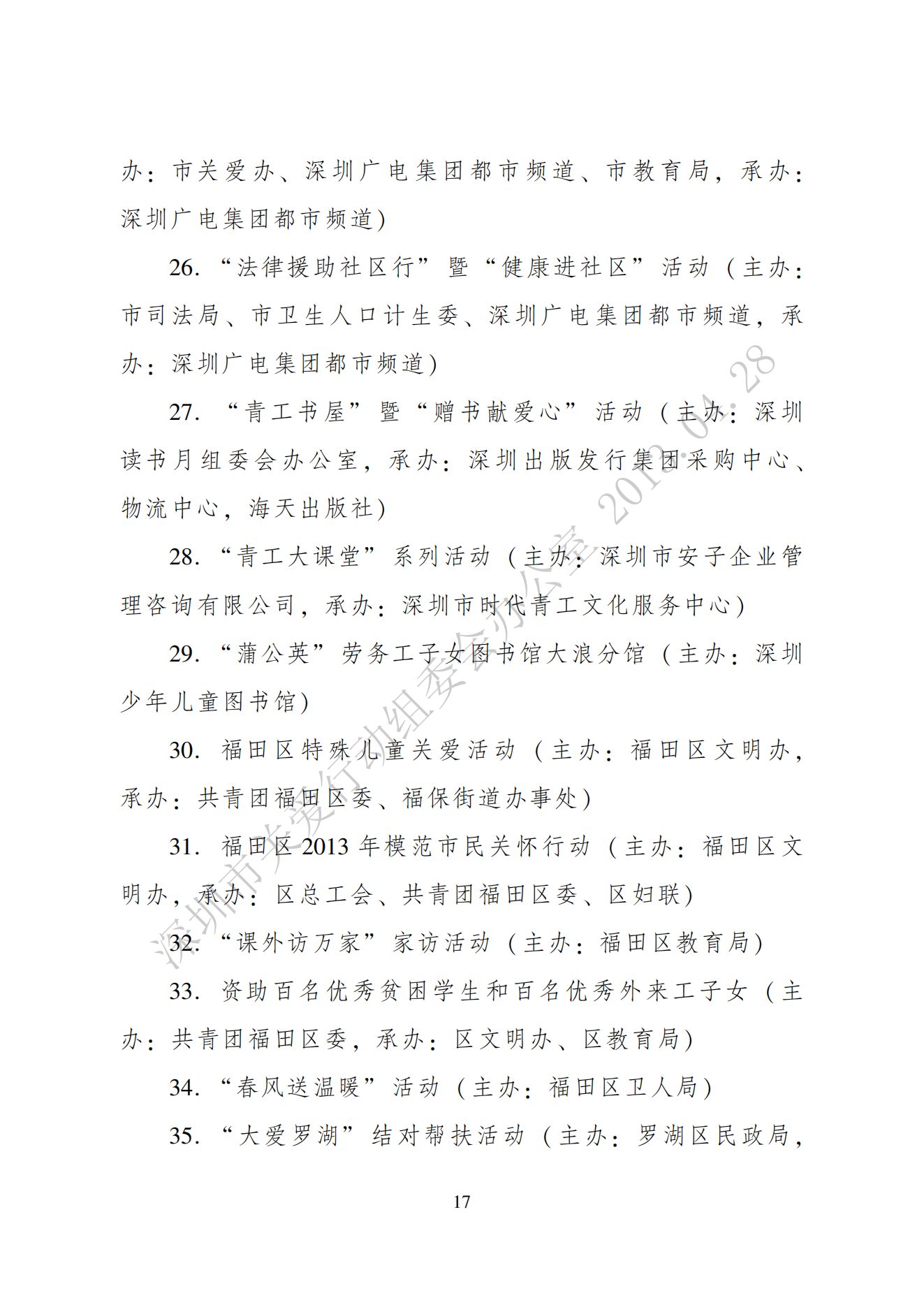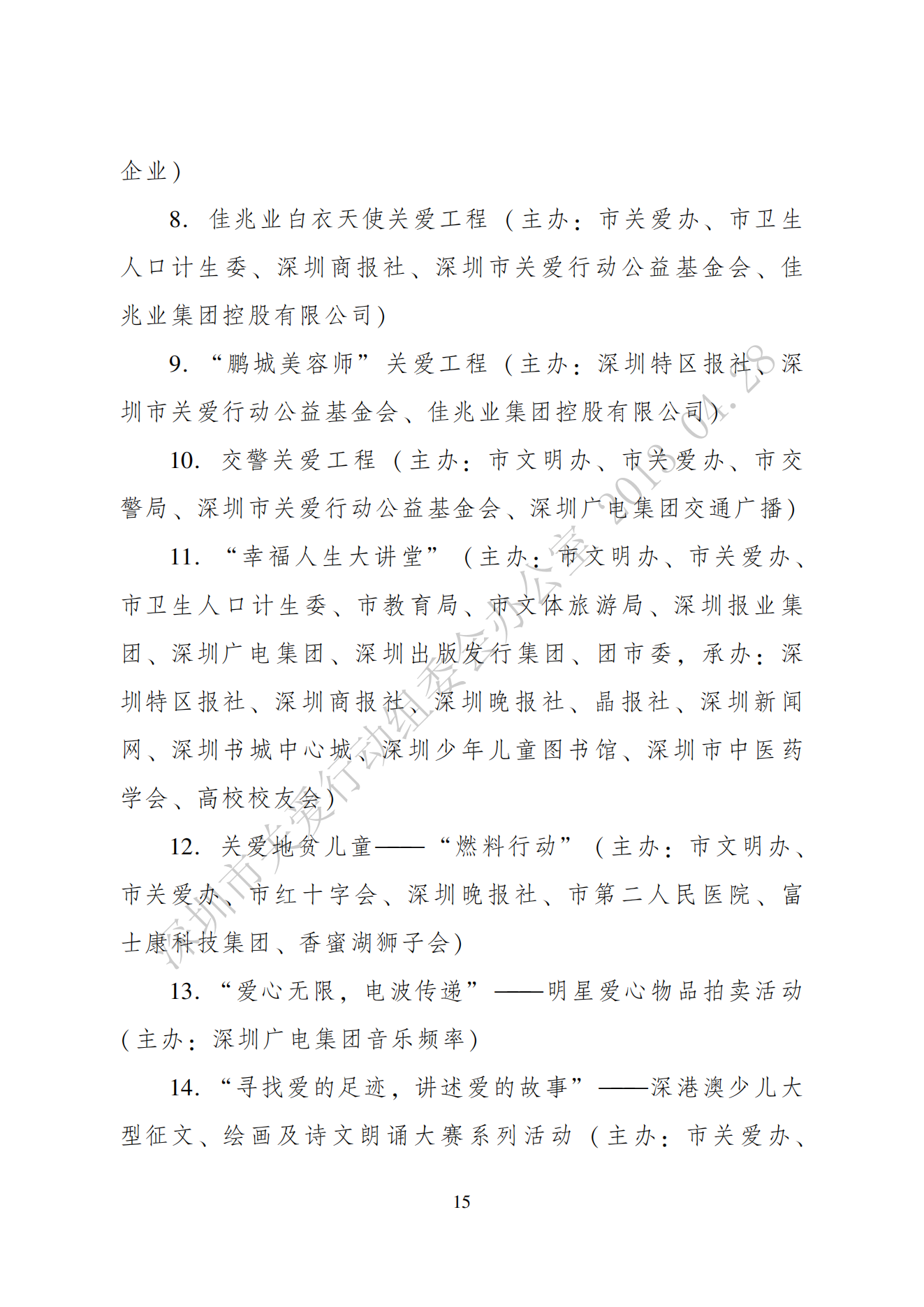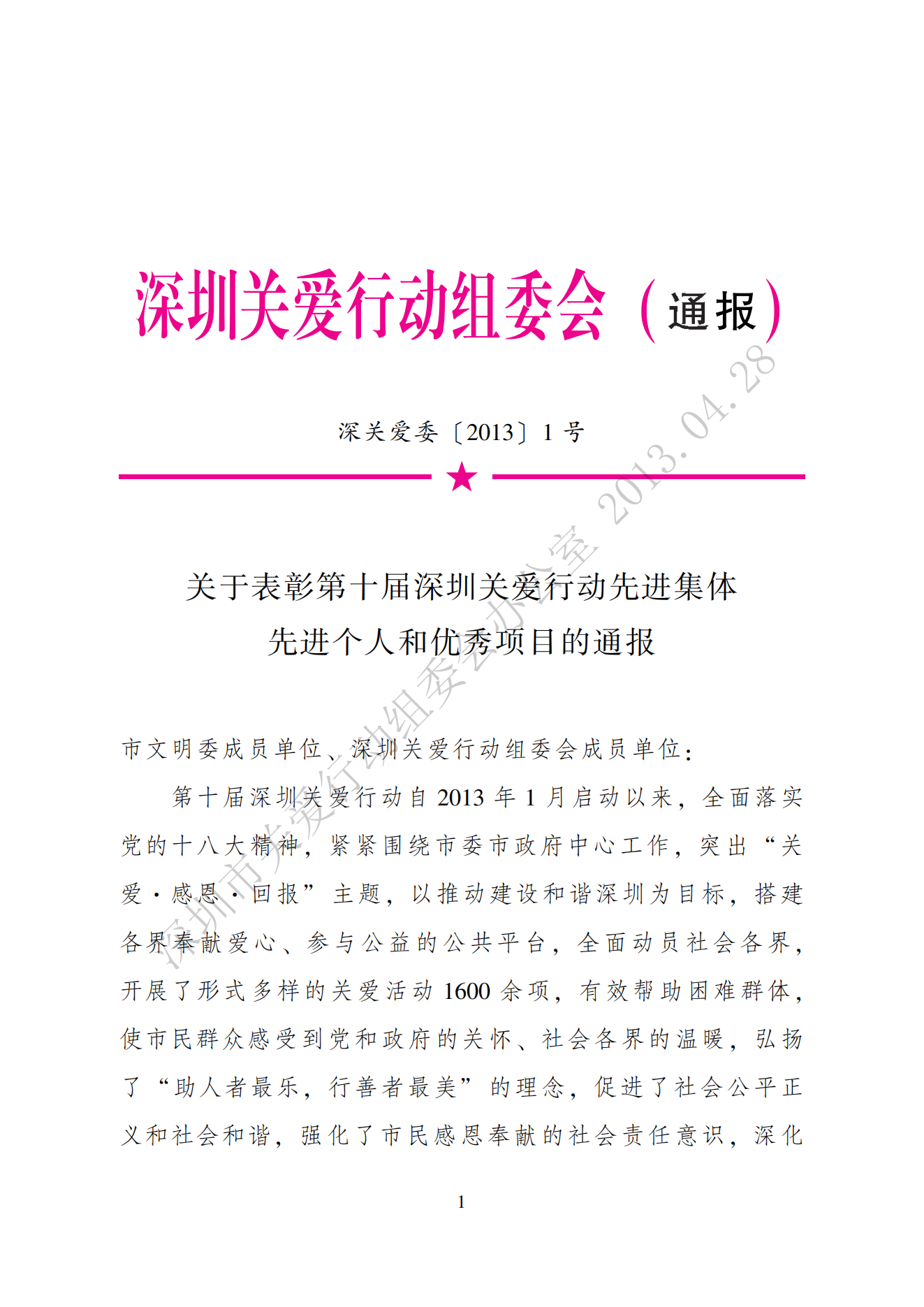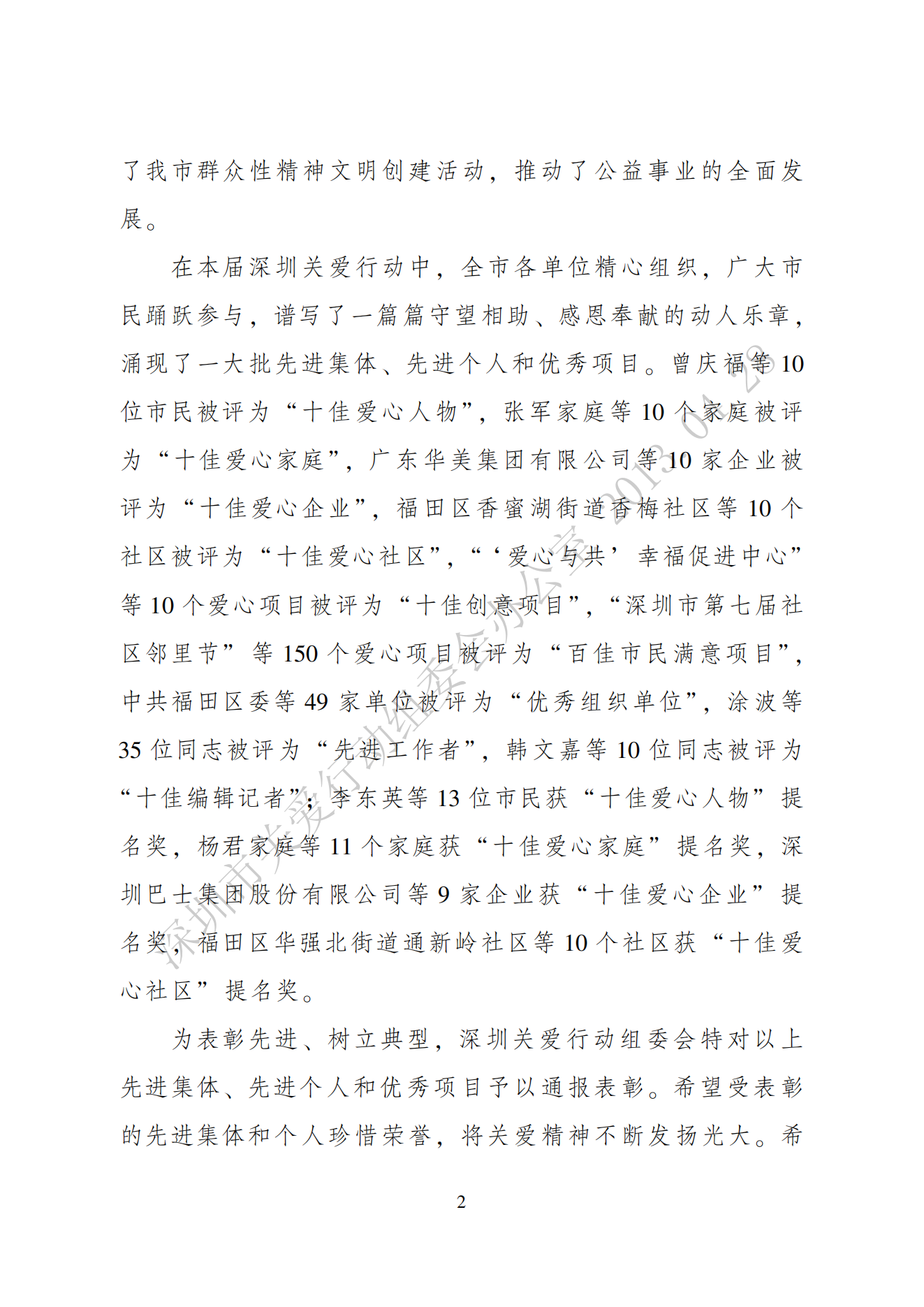 關(guān)于表彰第十屆深圳關(guān)愛(ài)行動(dòng)先進(jìn)集體、先進(jìn)個(gè)人和優(yōu)秀項(xiàng)目的通報(bào)