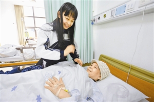 ????在此后的兩年多里,一放學,陳芳燕就會給媽媽洗腳、按摩,照顧媽媽睡覺。在病床邊陪媽媽聊天。上高中住校了,陳芳燕每天都給媽媽打電話,鼓勵媽媽戰勝病魔。