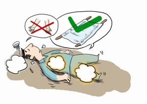 ????D(Do)中文意思“行動”,即動手救人。昏迷但有呼吸心跳的,給患者翻作側臥位,這樣可以保持呼吸通暢避免嘔吐堵塞;昏迷且呼吸不正常的,最重要的是要持續不斷地胸外按壓,推動血液循環,避免腦死,如果不懂人工呼吸可以不用做,因為血液中的氧氣還可以供應一小段時間。