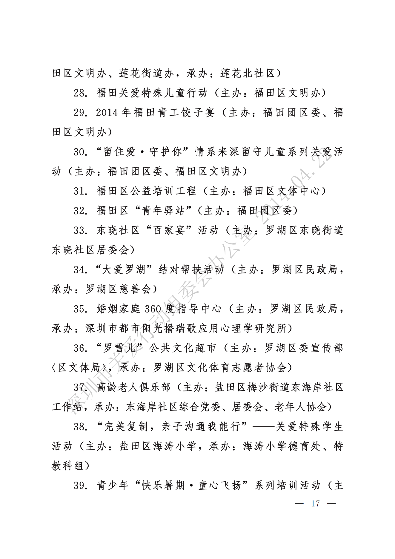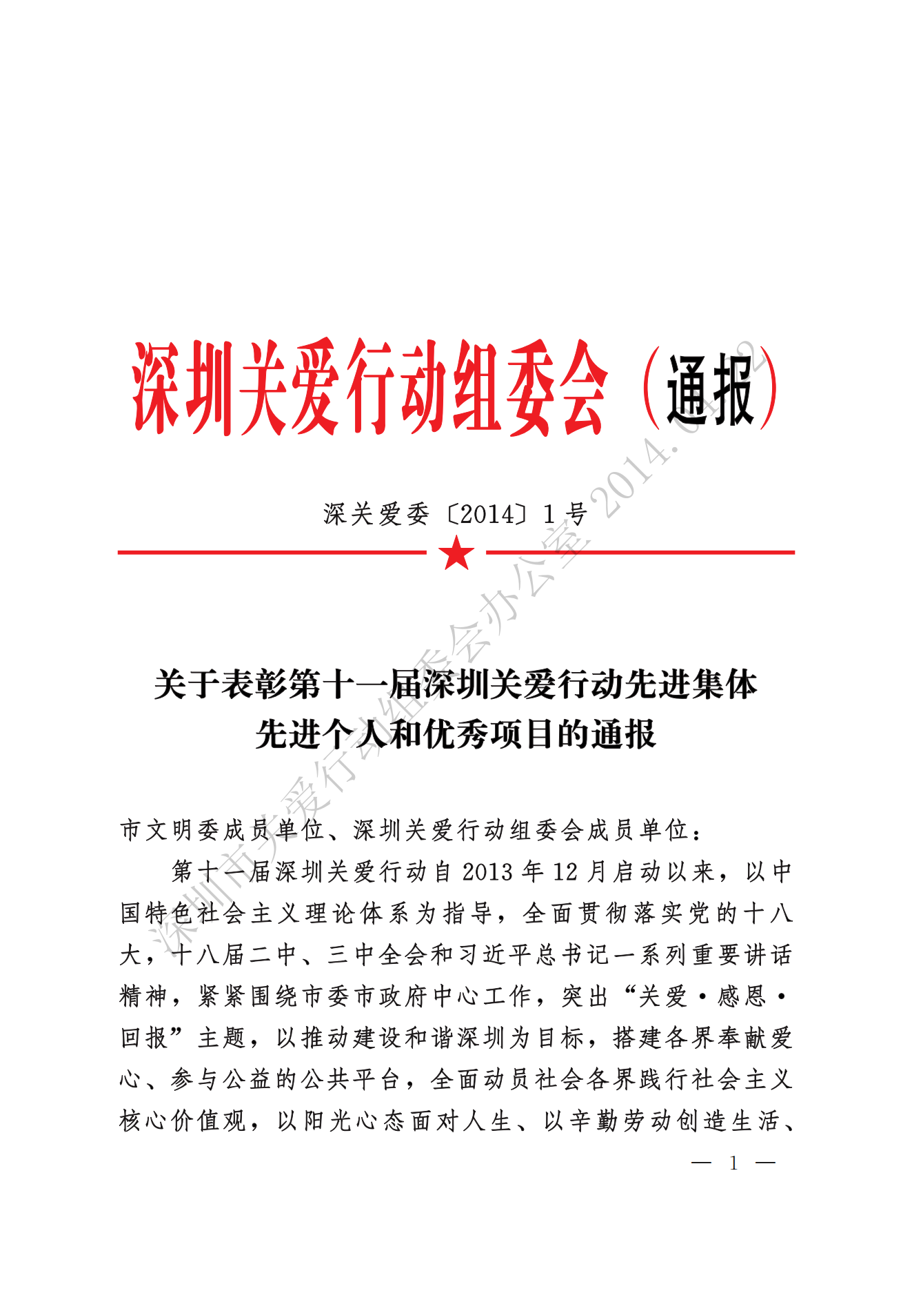 關(guān)于表彰第十一屆深圳關(guān)愛行動(dòng)先進(jìn)集體、先進(jìn)個(gè)人和優(yōu)秀項(xiàng)目的通報(bào)