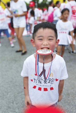 完成全程的孩子收到愛心獎牌。