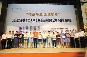 環衛工人是城市的美容師,他們起早貪黑,戰酷暑、迎寒冬,清掃收運處理城市生活垃圾,裝扮城市的潔凈美麗,用自己的勤勞和汗水奉獻社會、服務市民。9月6日下午,深圳市城市管理局、深圳市美麗深圳公益基金會、深圳優悅廣播,在園博園三樓多功能廳聯合啟動了“情系環衛 金秋獎學”2016關愛環衛工人子女獎學金頒發儀式暨中秋慰問活動,邀請優秀環衛工人子女代表參加獎學金頒發儀式,慰問參加頒獎儀式的環衛工人。
