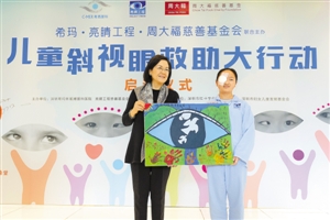 ??? 10月13日是世界視覺日,深圳?,斄猪槼贬t(yī)院、亮晴工程慈善基金會(huì)、周大福慈善基金會(huì)聯(lián)合主辦的“?,敗ち辆こ獭ぶ艽蟾?兒童斜視眼救助大行動(dòng)”啟動(dòng)。圖為受助的孩子向周大福慈善基金副理事長(zhǎng)劉璞女士贈(zèng)送自己的畫作。深圳商報(bào)記者 李博 攝