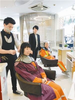 據介紹,除了免費剪發活動,從昨日起,首腦所有門店化身成為愛心歇腳屋,為環衛工人提供喝水、休息、創可貼、洗手間、縫補等免費便利服務。