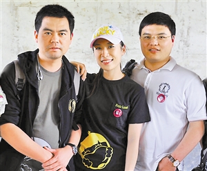 蘇哲芳(正中)與“免費午餐”發起人鄧飛、秘書長胡益華合影。受訪者供圖