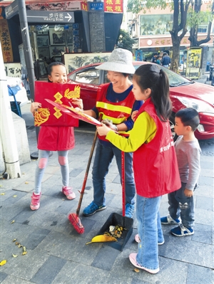 ③ 坪地街道怡心社區小分隊15日在坪地街道開展送福袋給環衛工人活動。