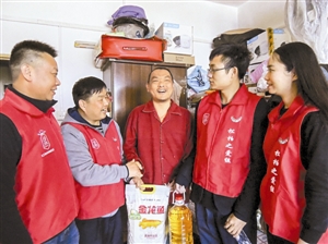 春節過后,市義工聯松柏之愛組的義工仍惦記病殘、失獨、孤寡等社區特困戶,他們春節過得好嗎?有什么困難?近日,義工們帶著慰問品探望近20戶社區特困戶。尿毒癥晚期的梅先生,雙目失明,平時全靠老母親照顧,現場感動得熱淚盈眶。