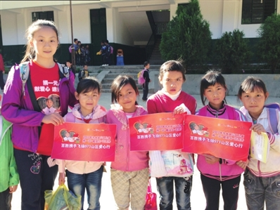 2013年夏天,珮雯再次隨著“捐一元”深入貧困山區(qū),結實了淳樸的普健仙小朋友,從此以后,她們成為無話不說的好朋友,雖然相隔千里,卻經常聯(lián)系,互相寄送小禮物。和普健仙多年的友誼,讓珮雯體會到幫助別人的快樂。當時,珮雯想了一個妙招:她給山里的孩子每人發(fā)一張小紙條,讓他們寫下自己的心愿:一個籃球、一個洋娃娃、一條漂亮的裙子......然后,珮雯把這些心愿卡帶回深圳,讓更多的人來共同幫助山區(qū)的孩子們。